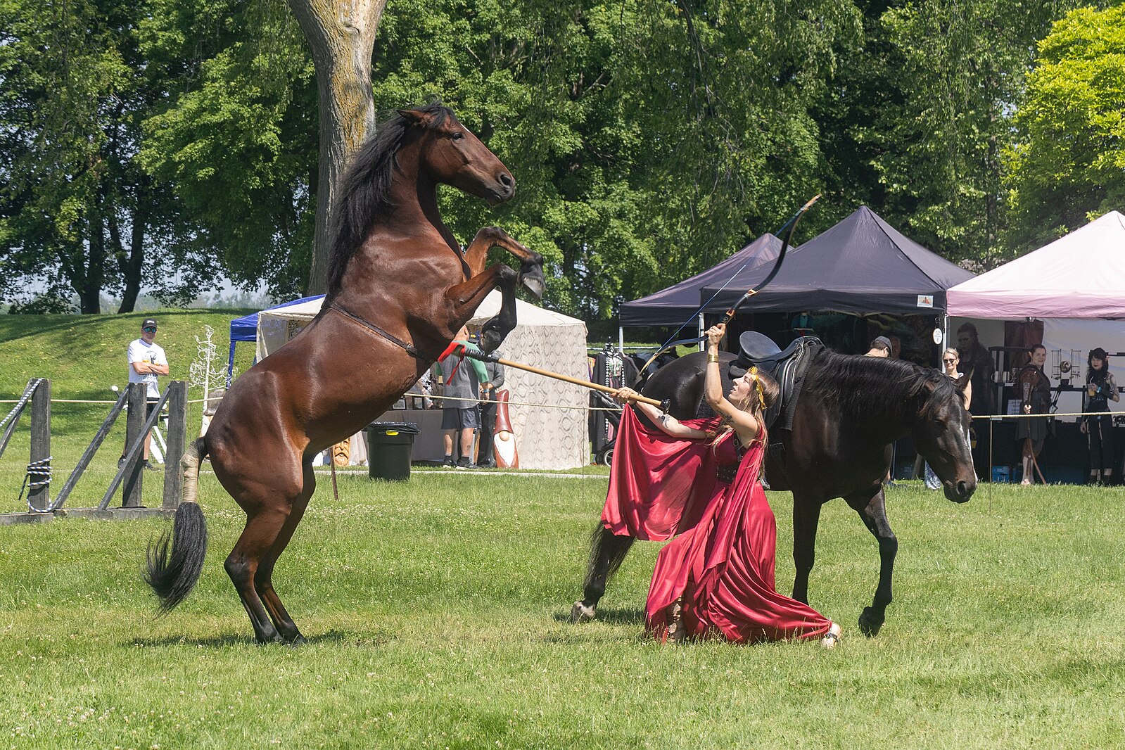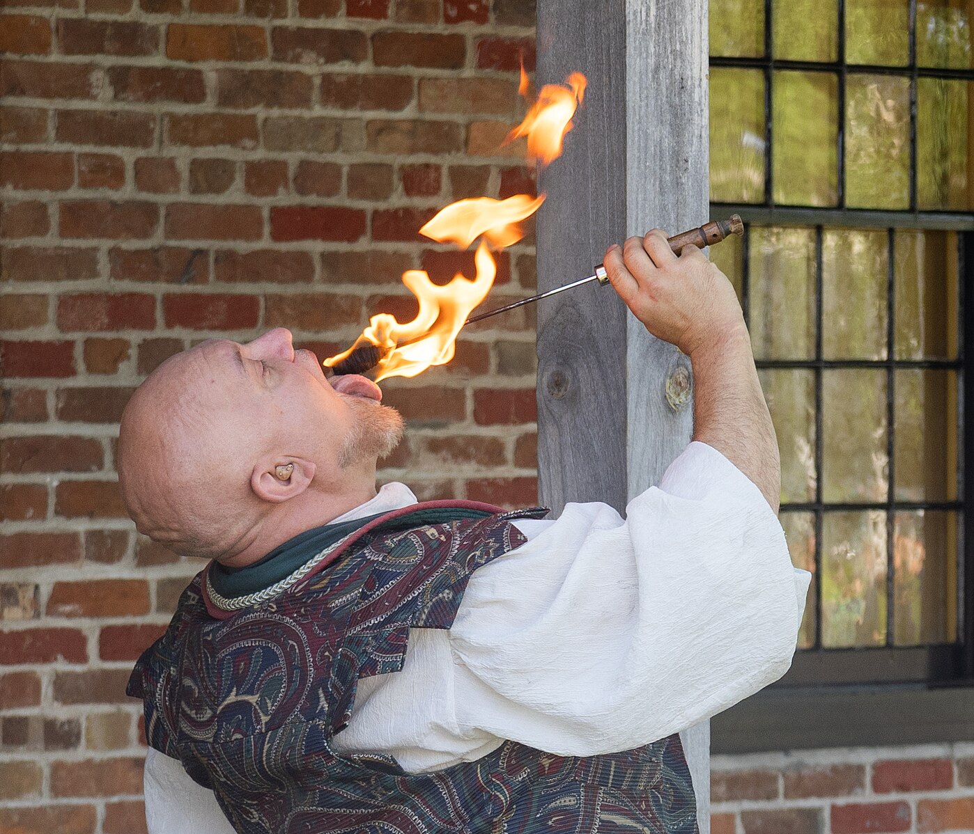 A crowd gathers to watch some kind of presentation. Watch along as the four performances showcase historical amusements!